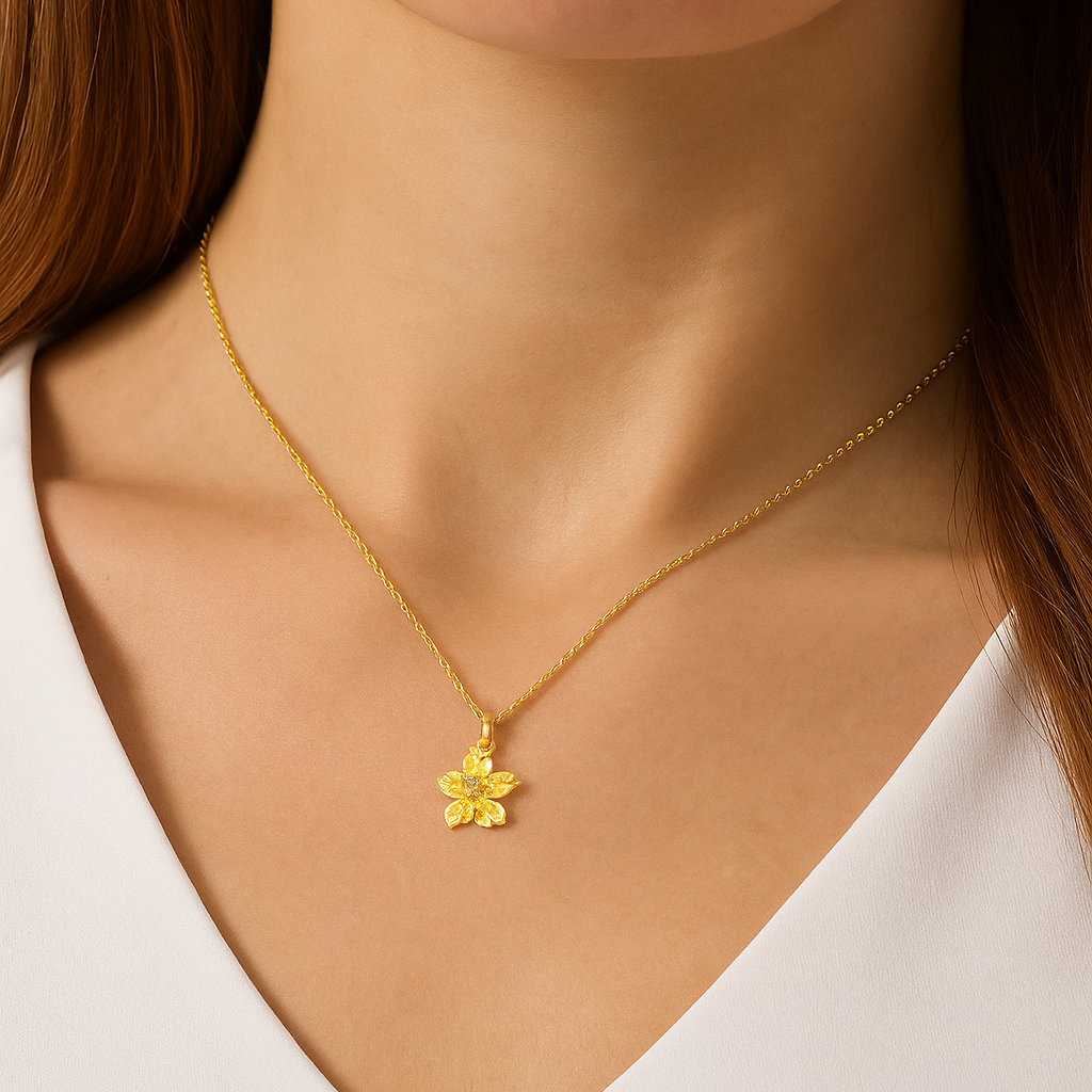 A burst of tropical radiance, this 18K yellow gold orchid pendant is accented with vivid pink sapphires. A bold celebration of nature’s exotic beauty, designed to enchant.