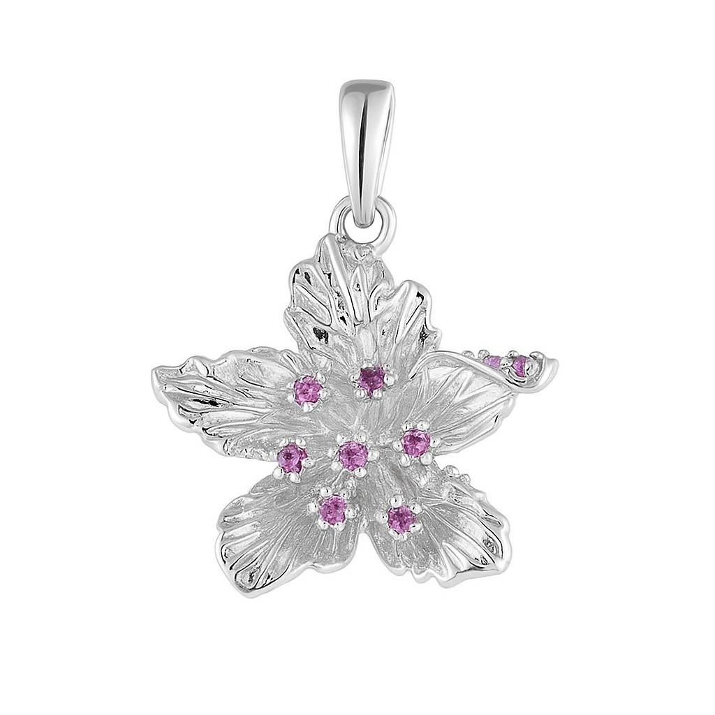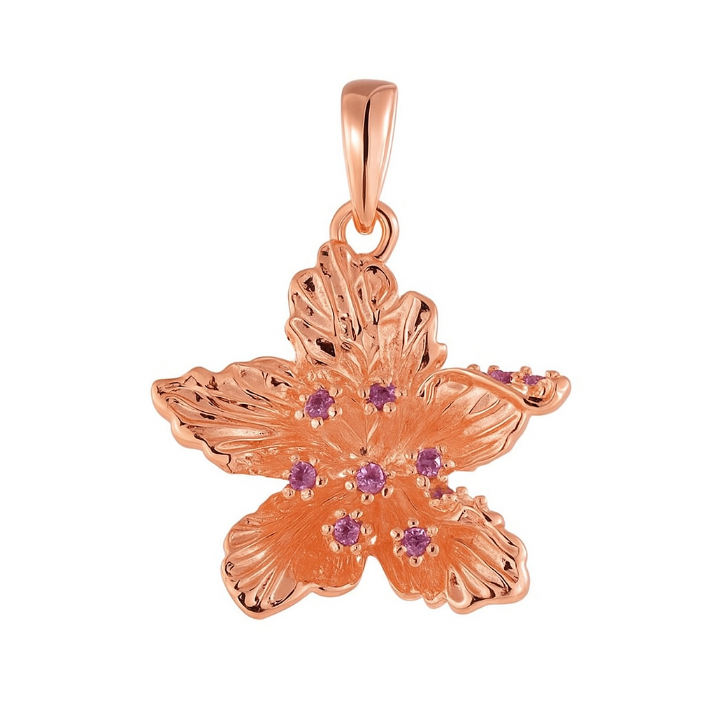 Size & Product Weight:Yellow Gold Orchid Pendant with Pink Sapphires (2.45gr)