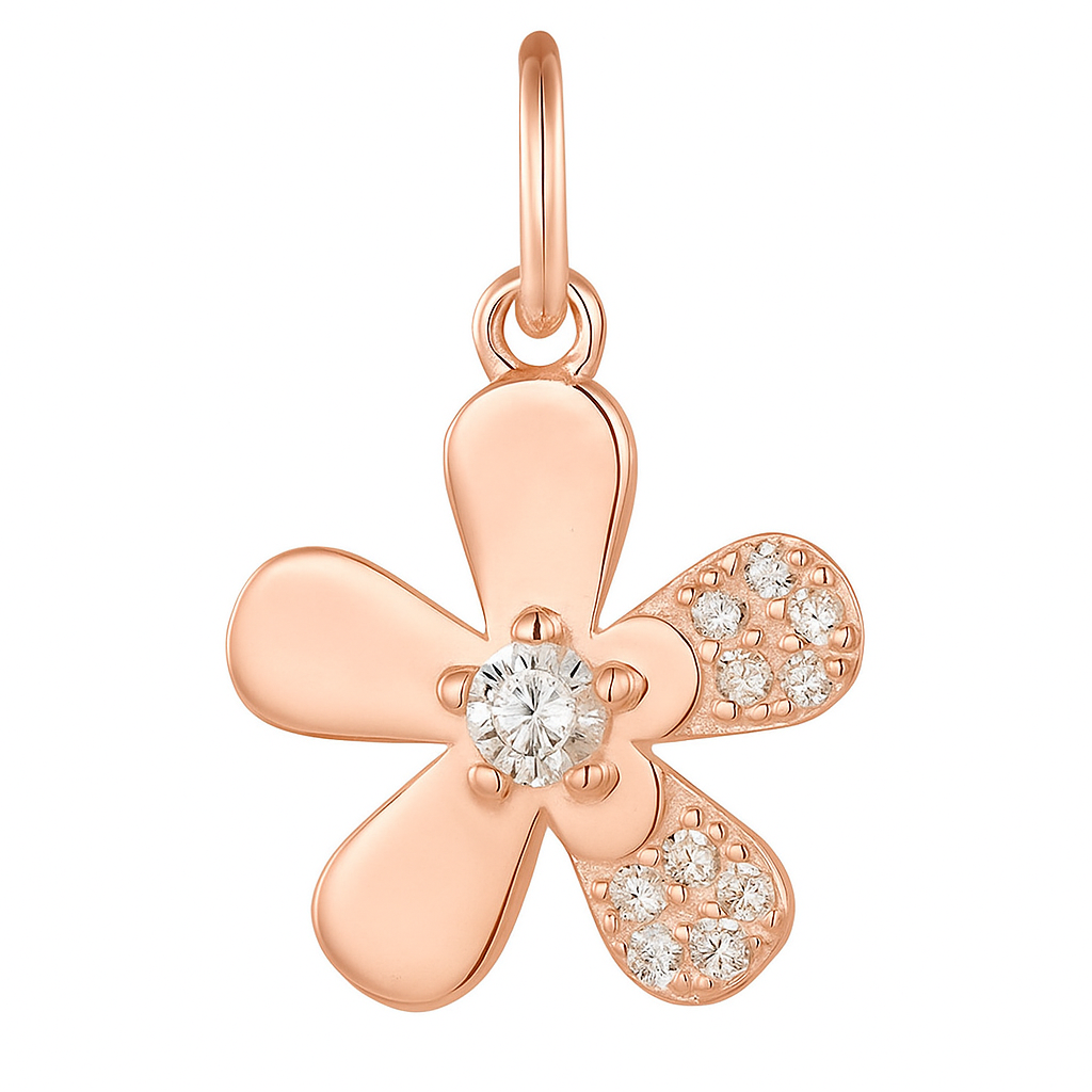 A polished flower pendant, accented with diamond petals—capturing nature’s purity and joy in sparkling simplicity.