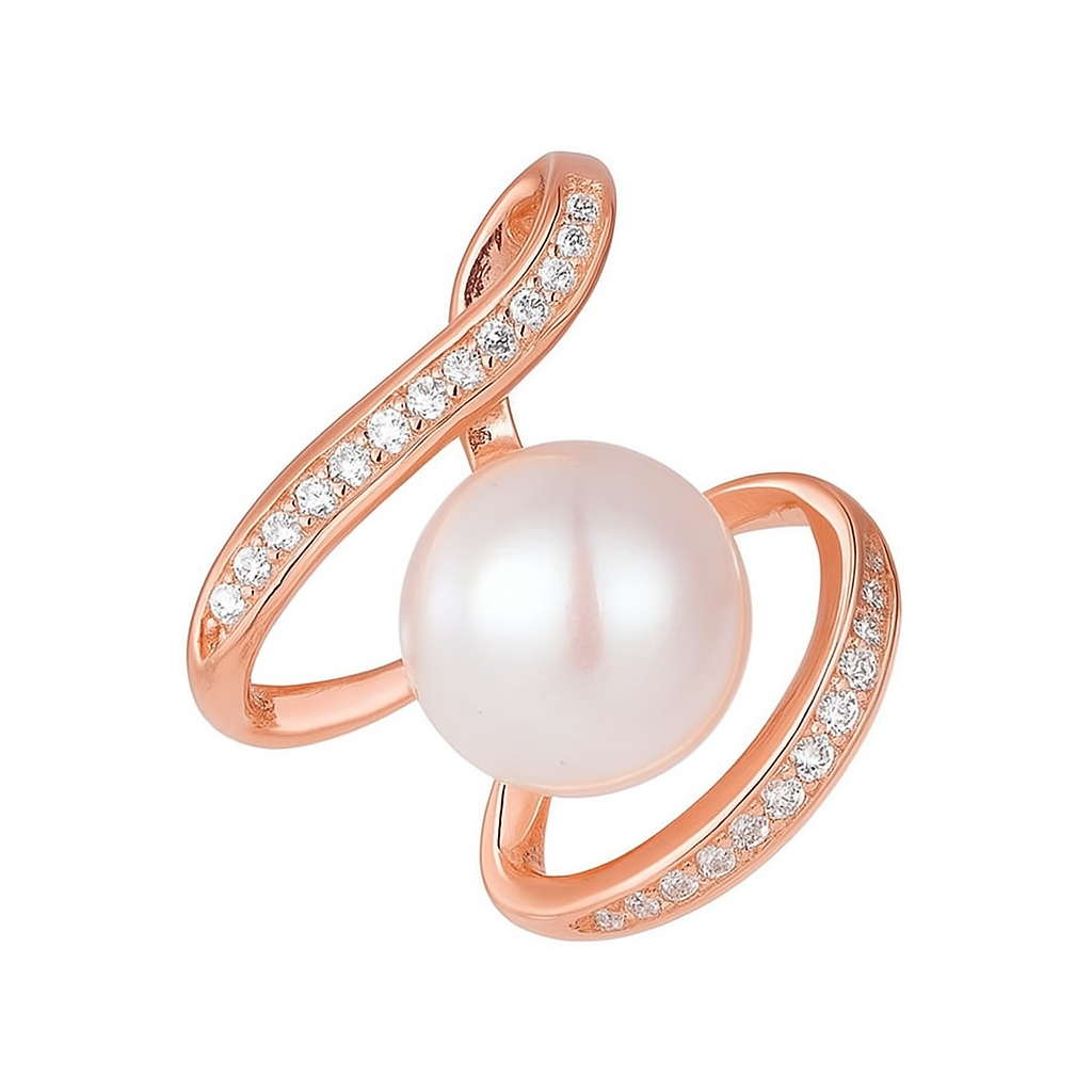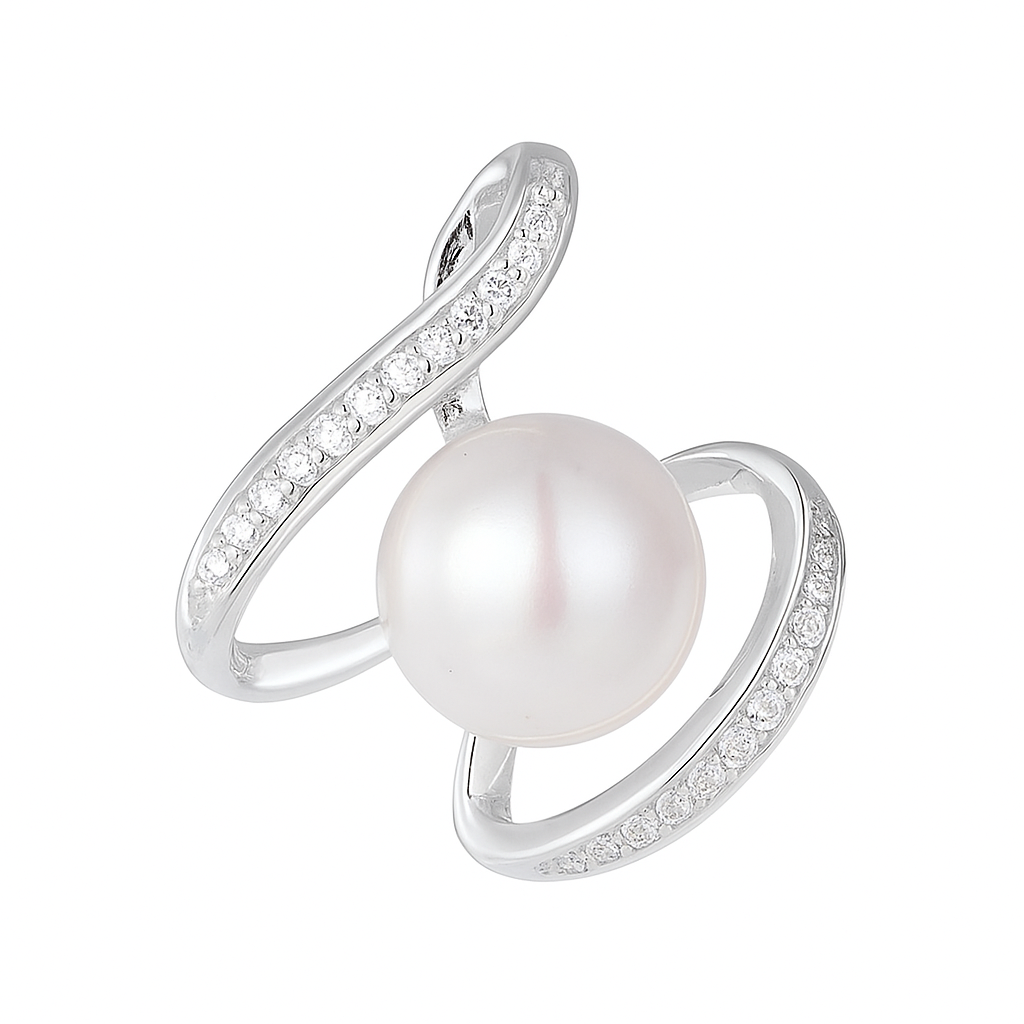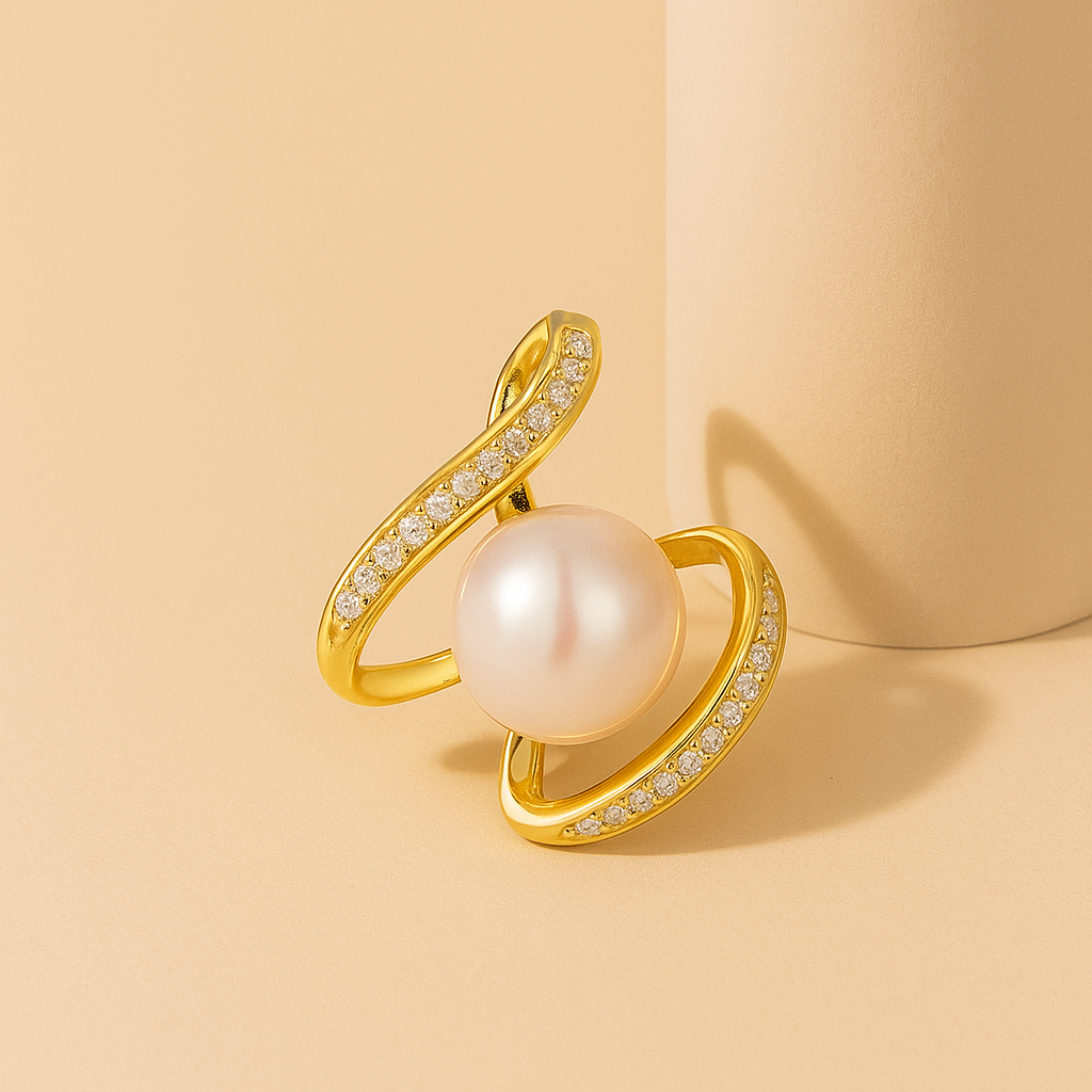 “Ocean’s Embrace” Pearl & Diamond Swirl Ring
