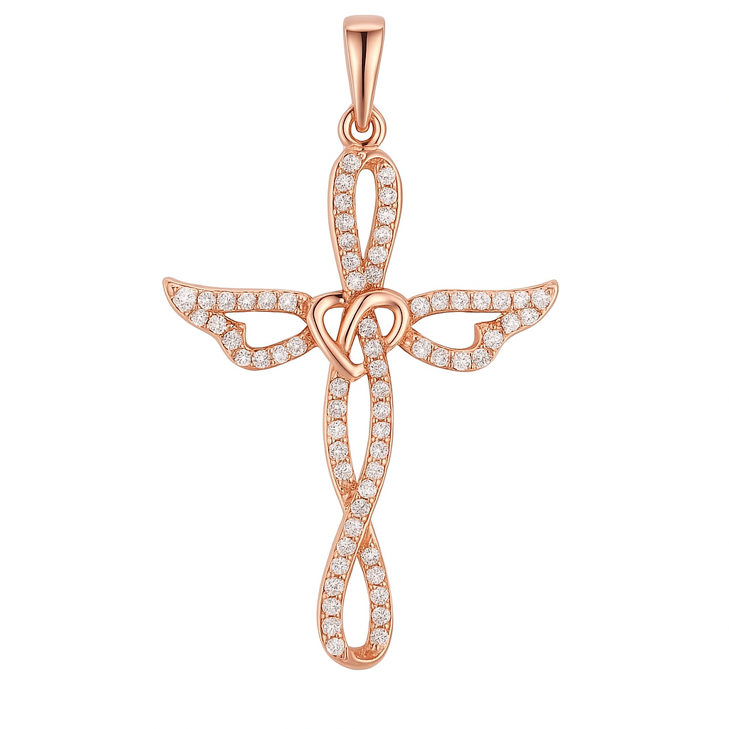 • This radiant pendant merges faith with artistry, its cross form adorned with delicate angel wings. Set in 18k gold with VS1 diamonds, it embodies protection, devotion, and eternal light—an heirloom of spiritual elegance.
