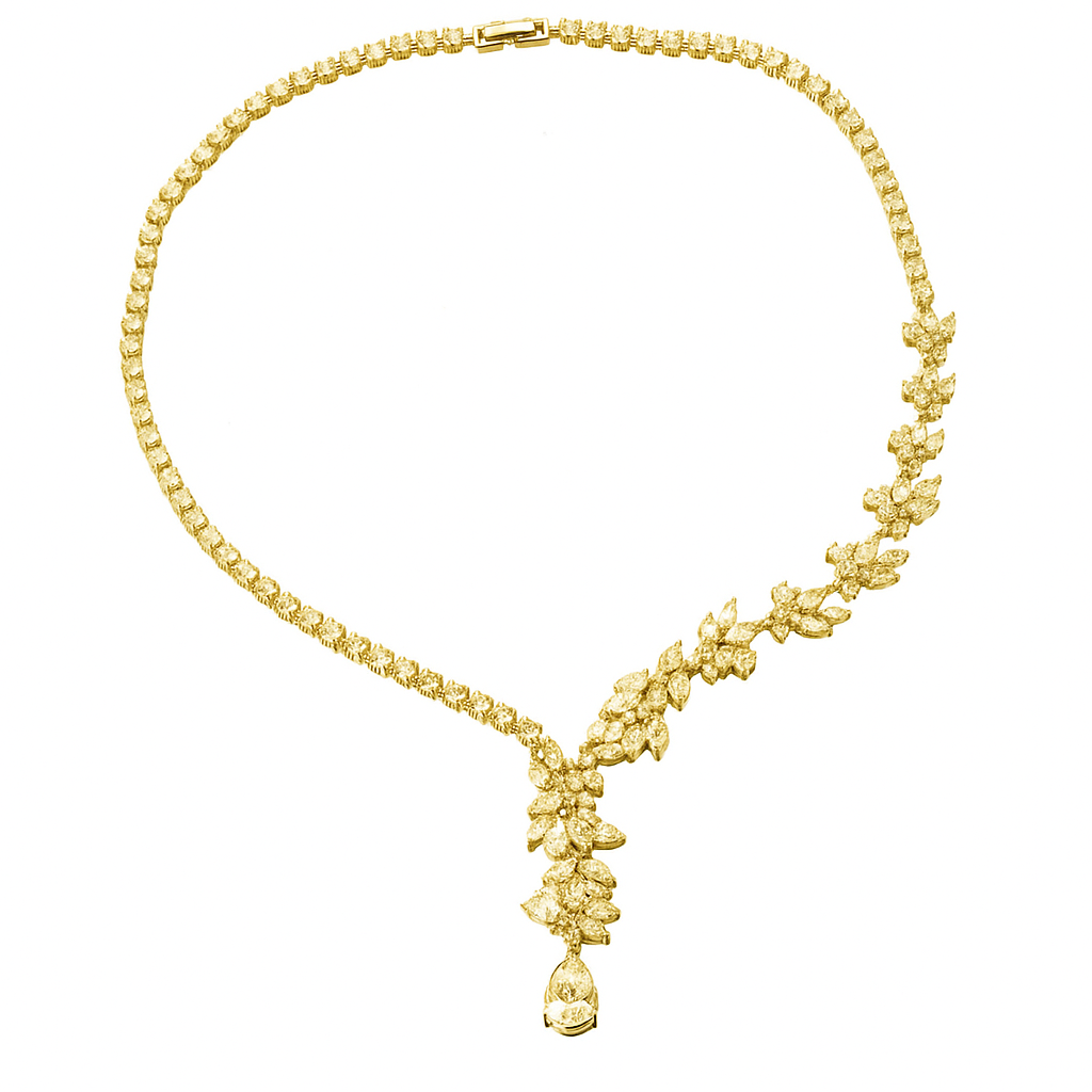 • A celebration of elegance in motion, this necklace cascades with asymmetric brilliance, where leaf-like stones trace one side in organic rhythm, converging into a luminous teardrop centerpiece. It embodies the poetry of nature — the balance of wild beauty and refined sophistication. Designed for the woman who walks with quiet strength yet dazzles with presence, this necklace radiates with emotional depth, making it the perfect companion for life’s most cherished occasions.