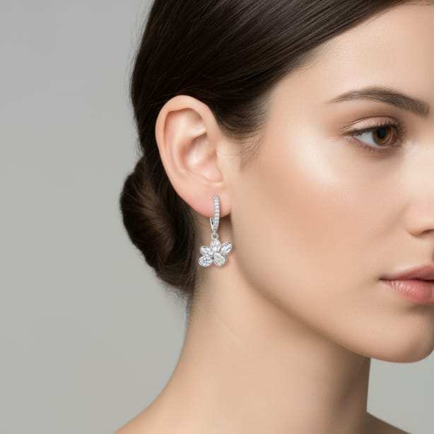 Home “Blooming Grace” Diamond Floral Drop Earrings