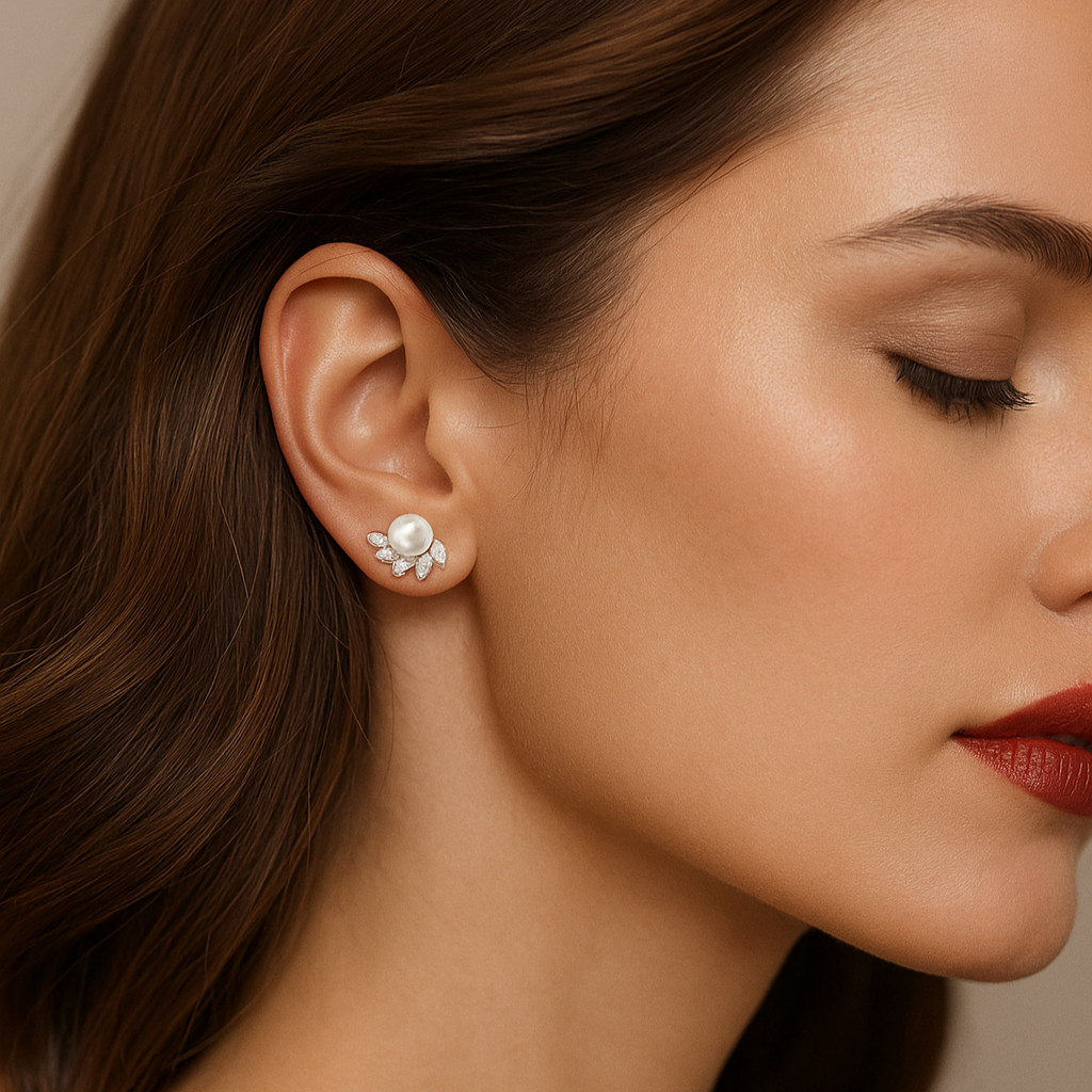 Matching the ring, these pearl earrings bloom with diamond-pavé petals that frame each lustrous pearl. The design captures both delicacy and strength, making them a versatile statement of refinement. Perfect for everyday elegance or elevated evening allure, they complete the harmony of the Blooming Radiance story.
