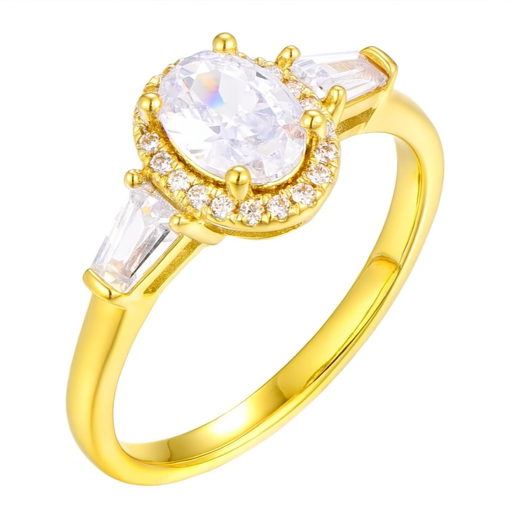 Size & Product Weight:“Celestial Crown” Oval Halo with Baguettes Ring (3.20gr)