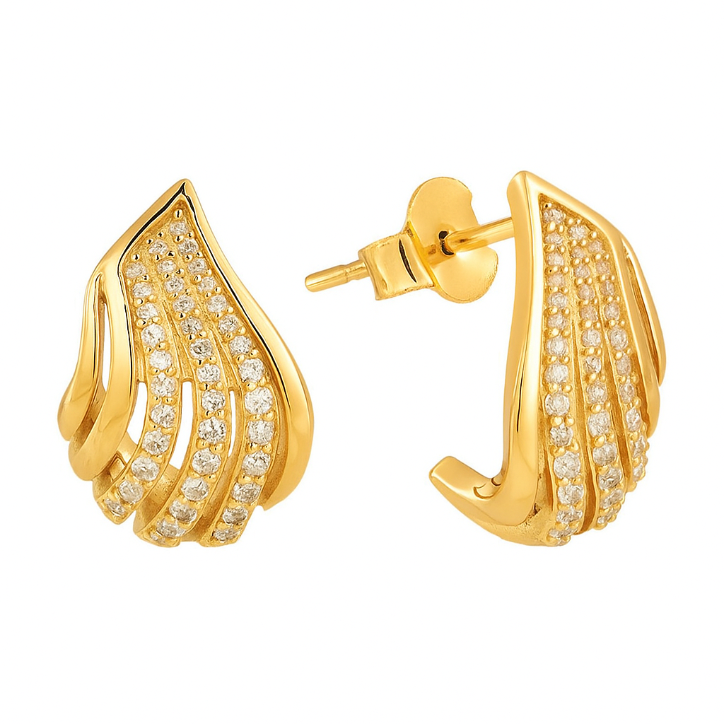 Sweeping arcs of pavé diamonds unfurl like wings in flight, sculpted in luminous gold. Bold yet refined, these earrings embody strength, aspiration, and the grace of freedom. Each curve mirrors the elegance of motion, designed for the woman who commands her path with quiet confidence and radiant presence.