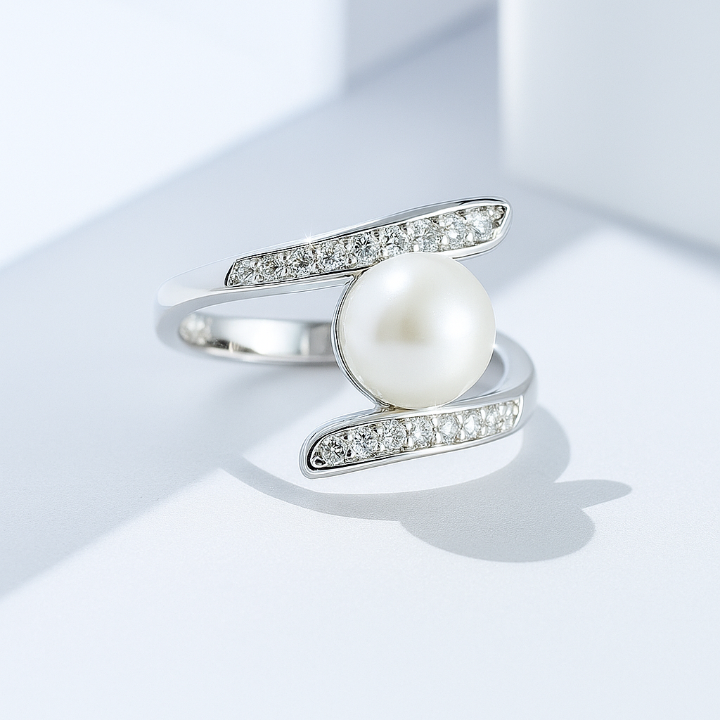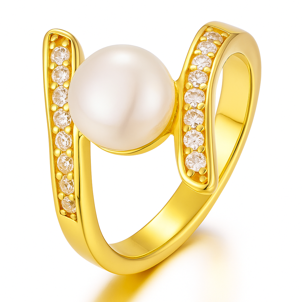 Size & Product Weight:Chic Pearl & Diamond Accent Ring (4.56gr)