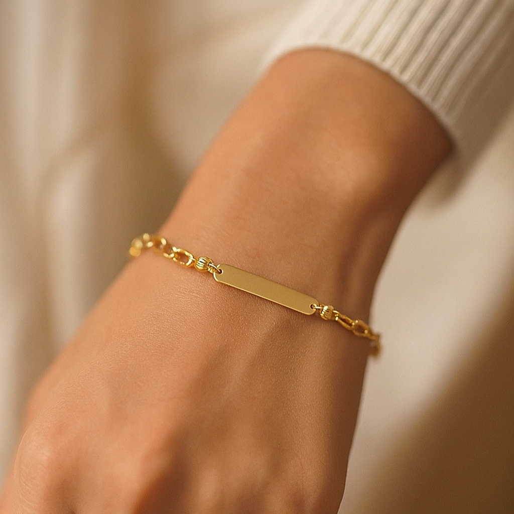 Classic Twisted Chain Name Plate Bracelet – 916 Gold