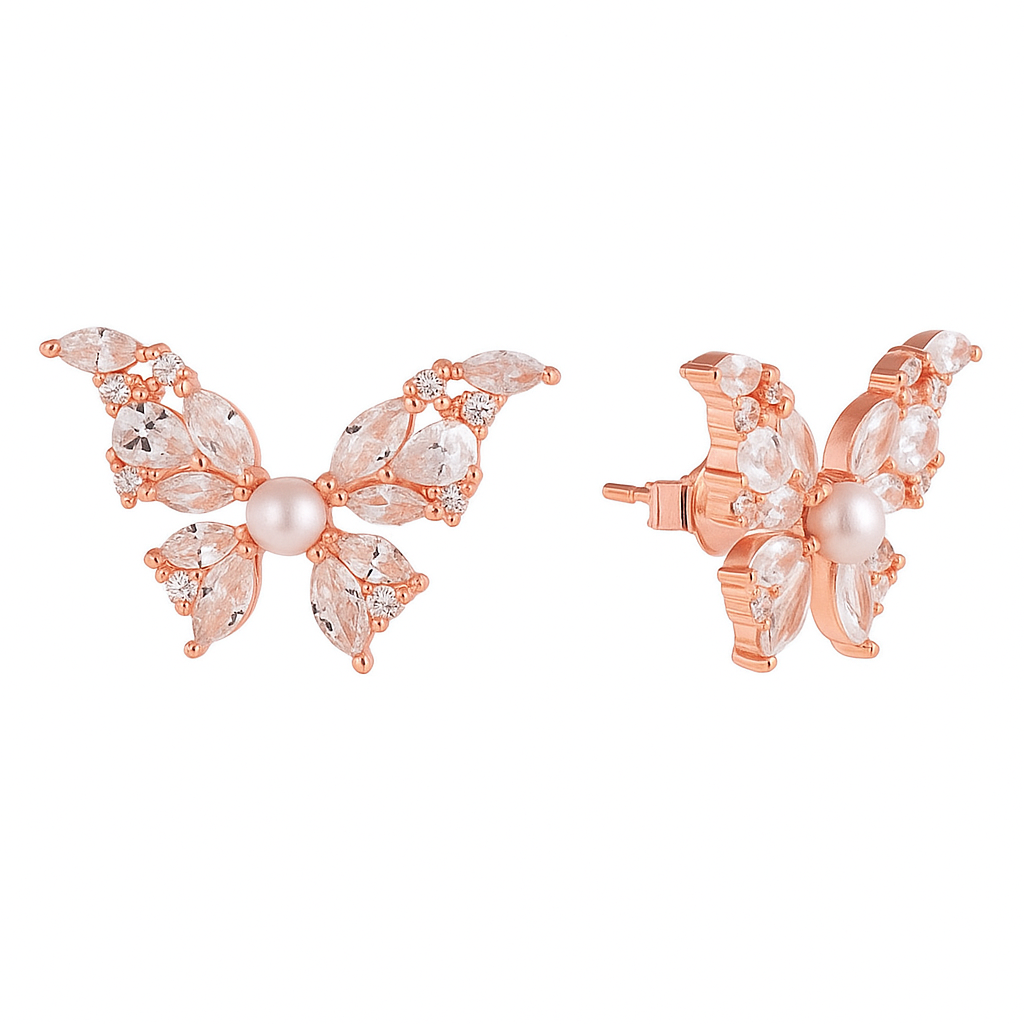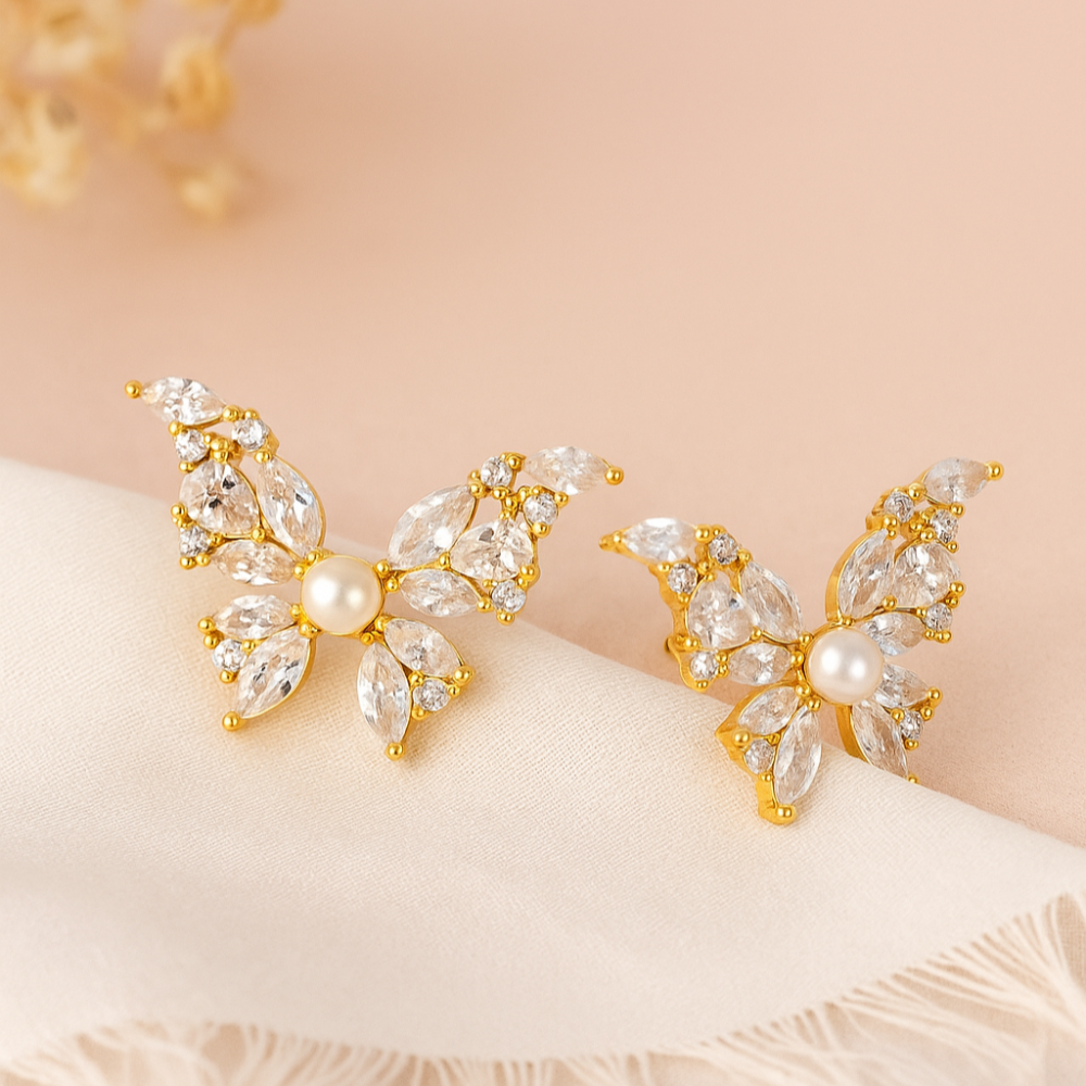 Home Diamond & Pearl Butterfly Stud Earrings