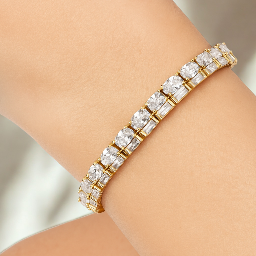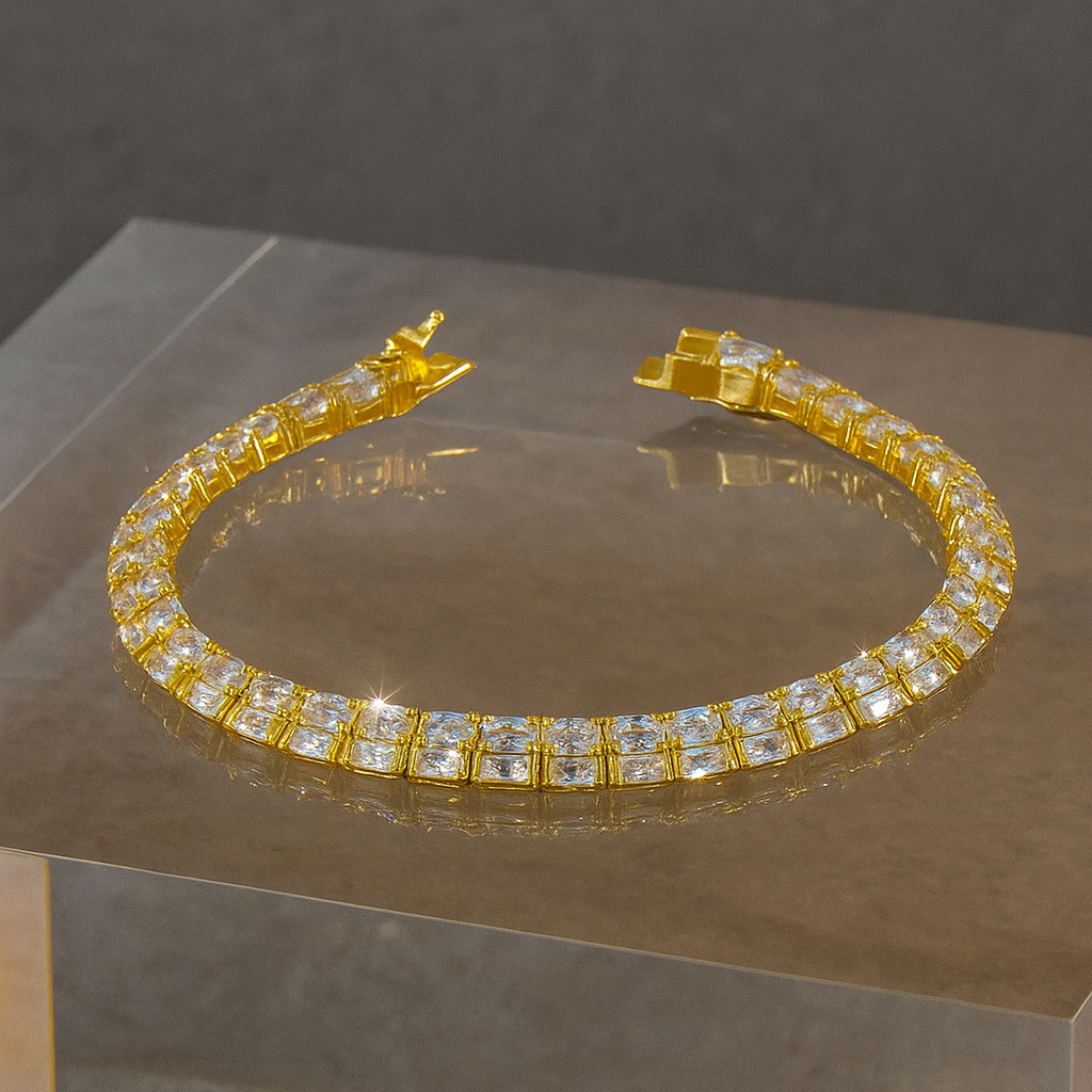 An eternal classic, the tennis bracelet is reimagined in breathtaking brilliance. A seamless row of VS1 diamonds, each hand-selected for fire and clarity, set in polished gold. Sophisticated and endlessly versatile, it is the ultimate symbol of grace and prestige.