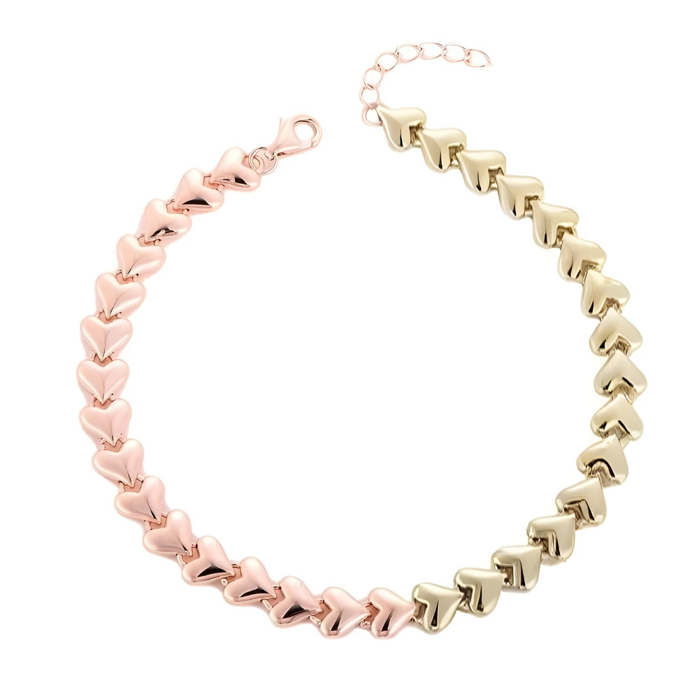 A symphony of romance, this bracelet features a cascade of sculpted heart links in contrasting white and rose gold. Fluid and bold, it represents the union of two souls in perfect balance. Worn alone or layered, it is a celebration of love eternal.