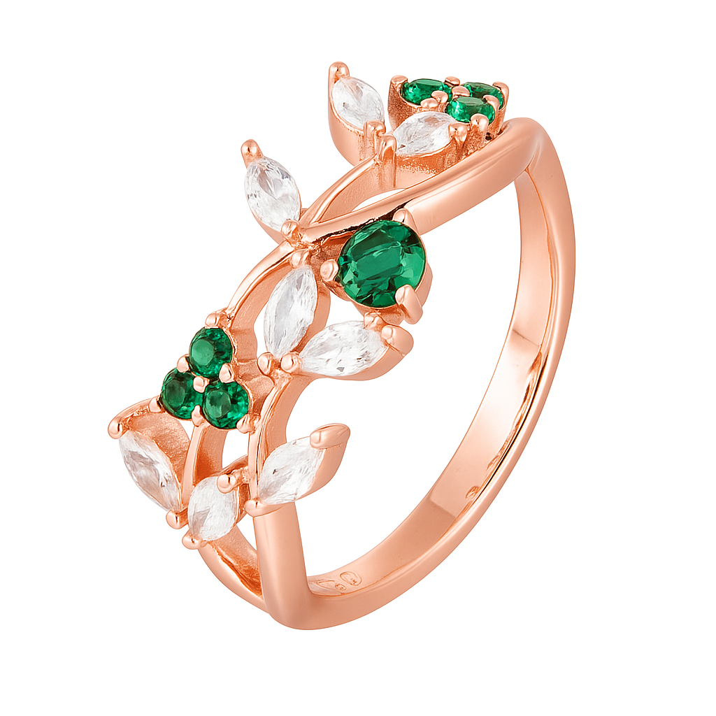 18k white, rose, or yellow gold with VS1 diamonds and emeralds Inspired by nature’s artistry, this ring blossoms with emeralds and diamonds in a graceful vine design. Symbolizing growth, renewal, and flourishing love, it is both a jewel and a living story of beauty.