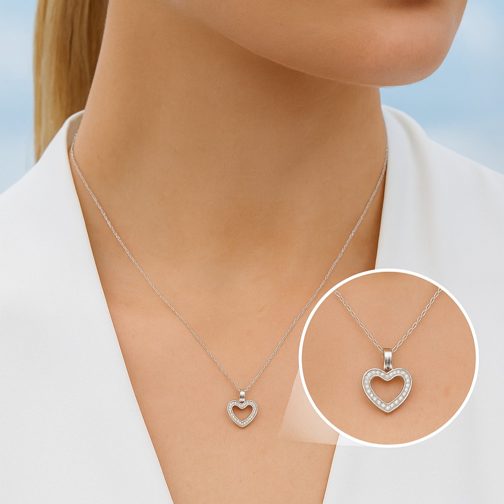 A diamond-lined open heart, symbolizing infinite love and timeless devotion.