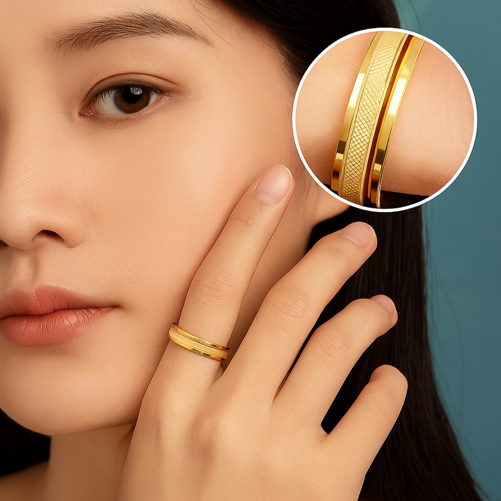 • The Eterna 916 Gold Textured Band embodies the art of quiet luxury. Its finely engraved lattice surface, framed by smooth polished edges, evokes a balance of strength and elegance that endures beyond time. Designed with meticulous craftsmanship, this piece becomes more than a ring — it’s a reflection of lasting devotion and refined taste. A true symbol of heritage and grace, destined to shine with you through every chapter of life.
