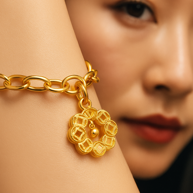 • The Eternal Bloom Charm radiates luxury through its exquisite petal-like form and fine golden craftsmanship. Each detail reflects harmony and prosperity, while the gentle dangling accent brings life and motion to its design. Elegant yet captivating, this charm embodies everlasting grace—made for those who bloom with confidence and style.