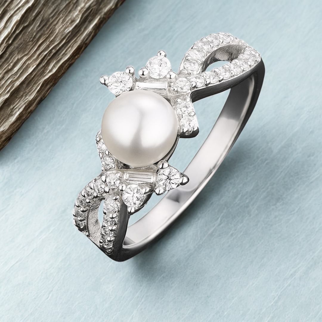 Home “Eternal Embrace” Pearl & Diamond Ribbon Ring
