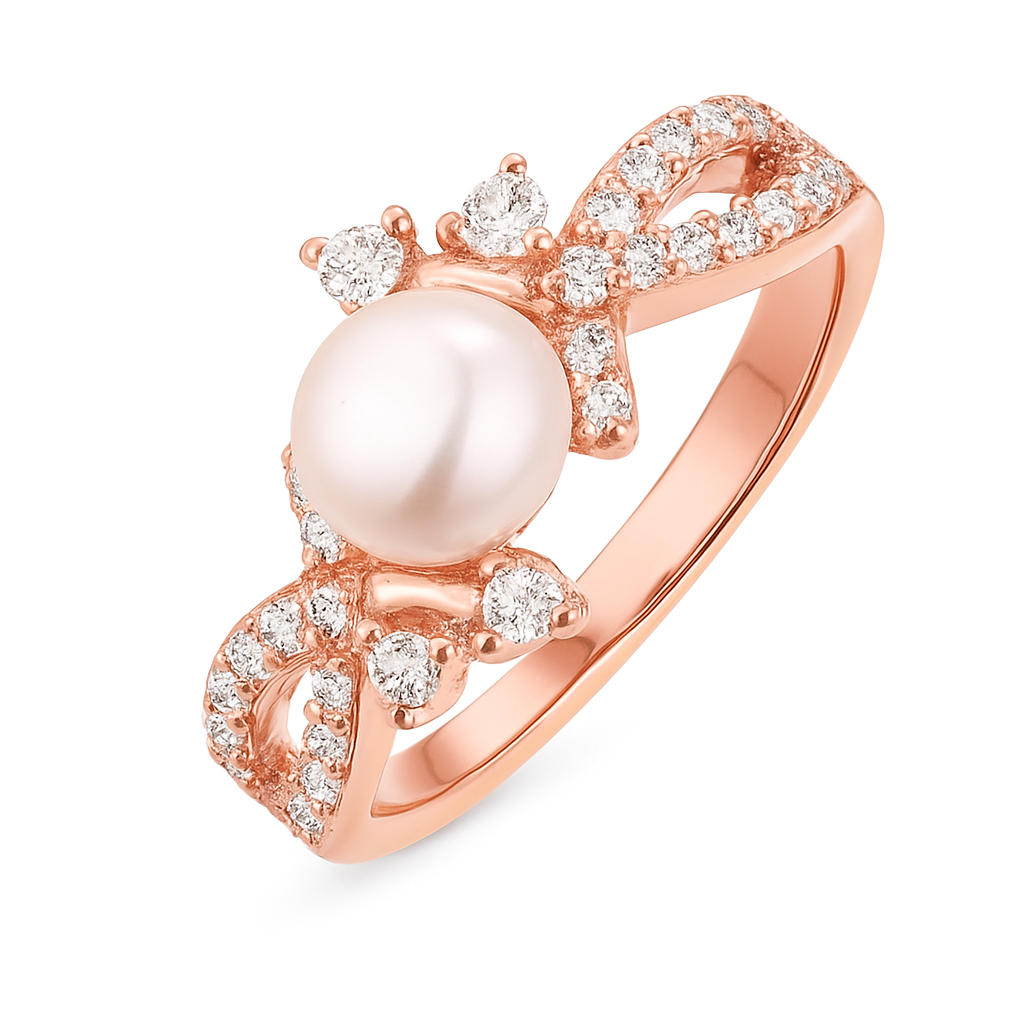 Size & Product Weight:“Eternal Embrace” Pearl & Diamond Ribbon Ring (3.90gr)