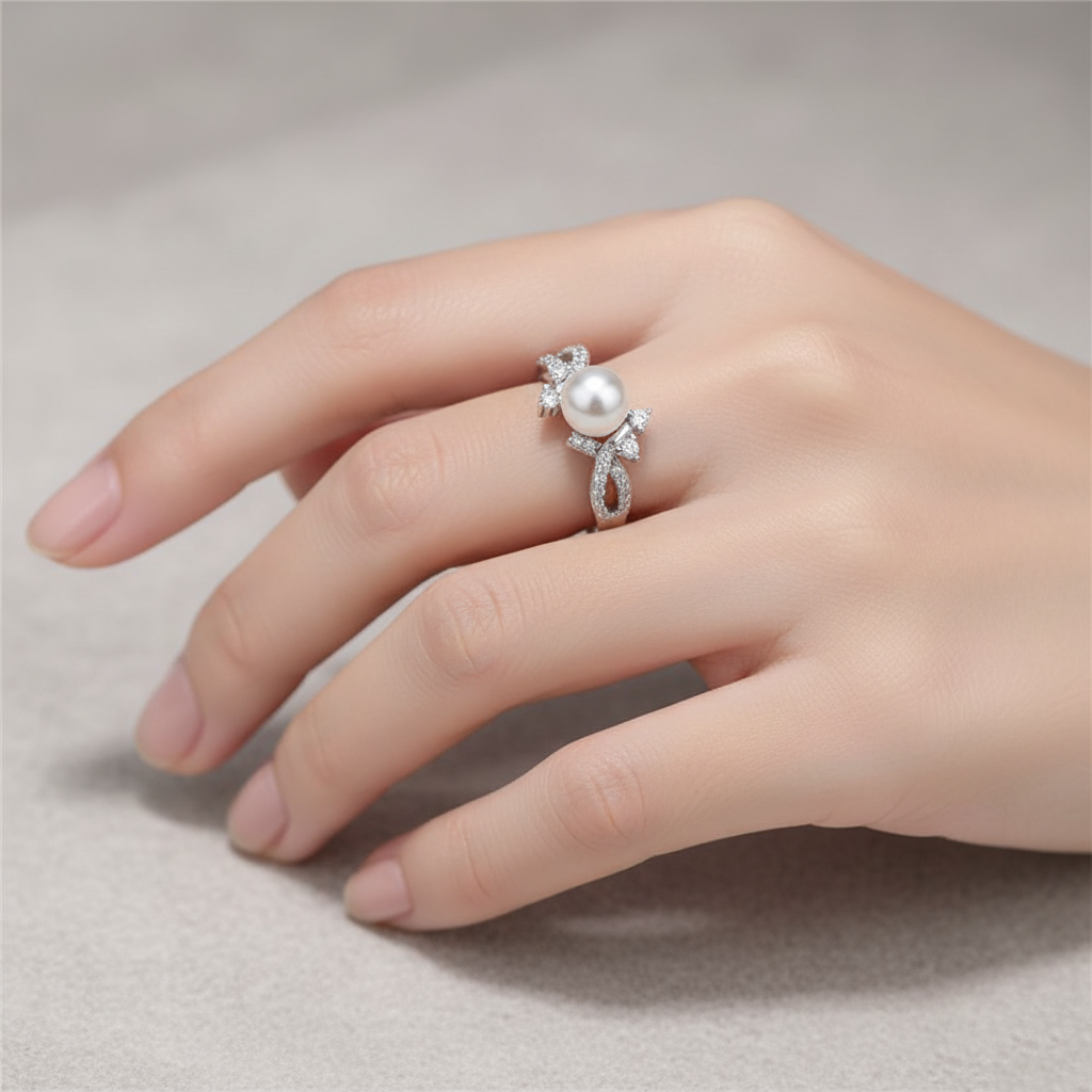 “Eternal Embrace” Pearl & Diamond Ribbon Ring