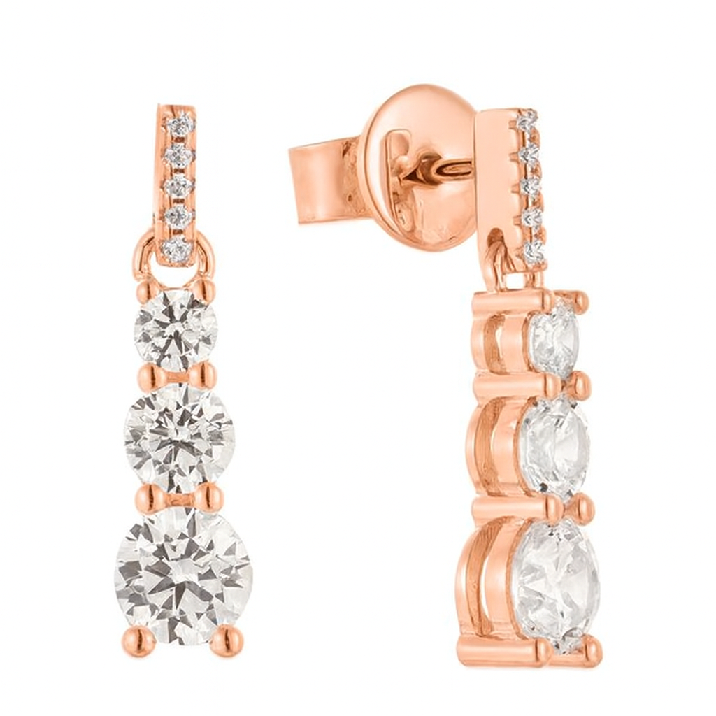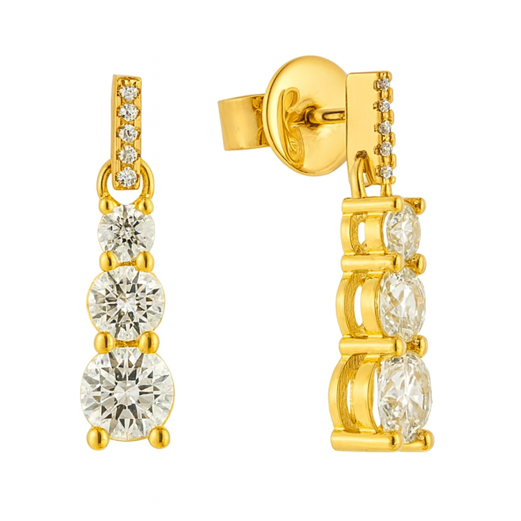 • Effortlessly elegant, this pair of earrings features a cascading trio of brilliant stones, each capturing the light with timeless sparkle. A sleek design that transitions seamlessly from day to evening, embodying understated luxury.