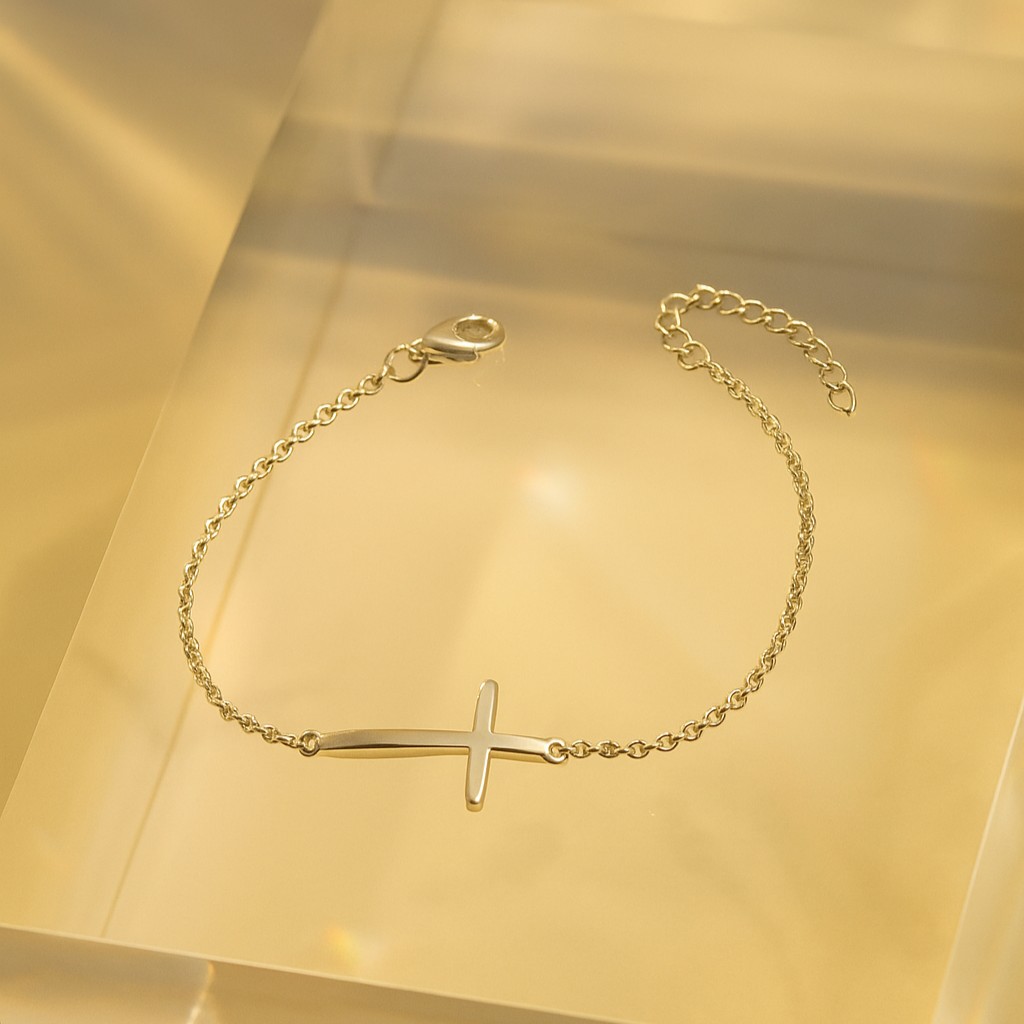 Minimalist and powerful, a sleek horizontal cross takes center stage in this refined bracelet. Symbolizing devotion, strength, and love, it is an understated yet profound treasure — effortlessly elegant for every occasion.