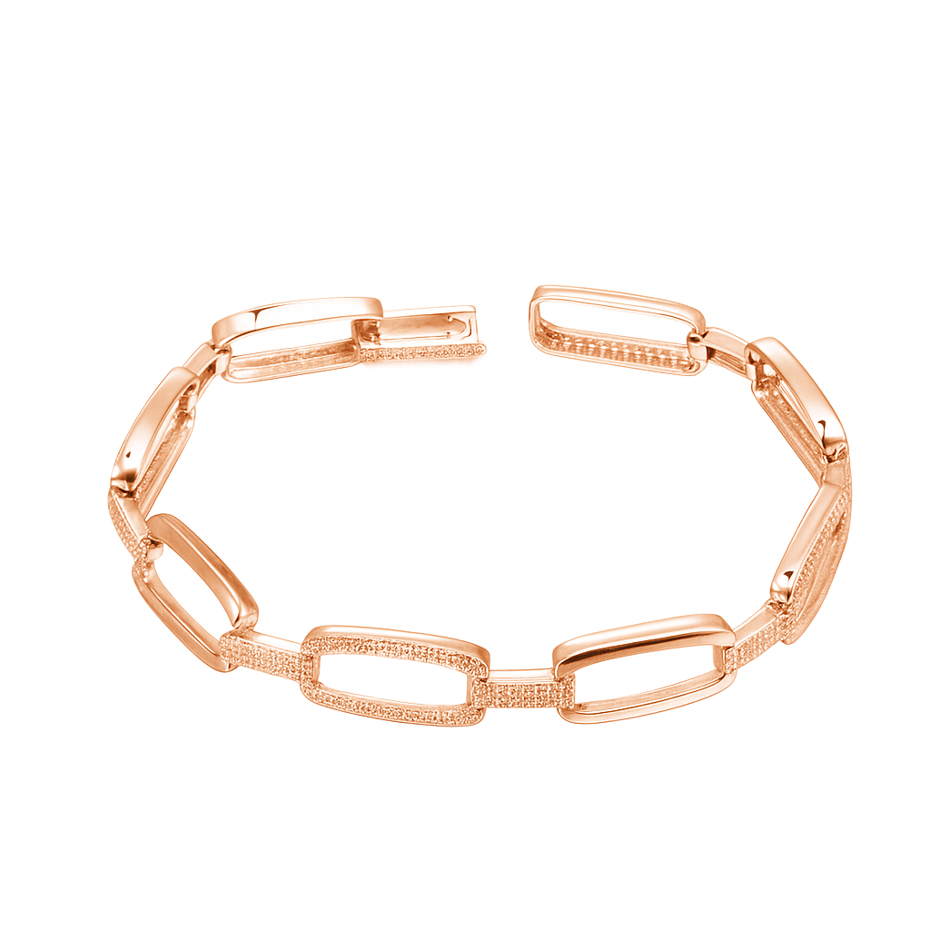 • A modern statement of refined minimalism, this bracelet unites bold rectangular links with delicate detailing that catches the light at every angle. Its clean geometry symbolizes strength, structure, and timeless sophistication — the kind of quiet luxury that whispers rather than shouts. Sleek yet substantial, it is a piece designed for those who see beauty in balance and power in restraint.