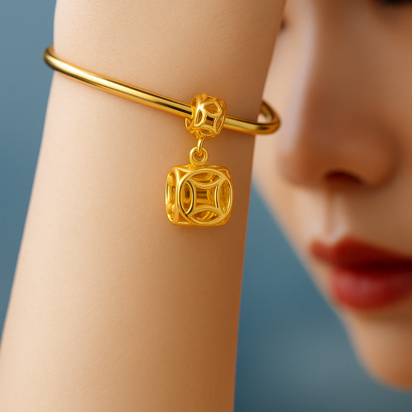 • The Golden Cube Charm captures a perfect harmony between structure and sophistication. Its intricate openwork cube design reflects strength, creativity, and balance—crafted to shine from every angle. Radiating luxury in every detail, this charm adds a touch of contemporary artistry to your bracelet or necklace, making it an unforgettable statement of refined style.