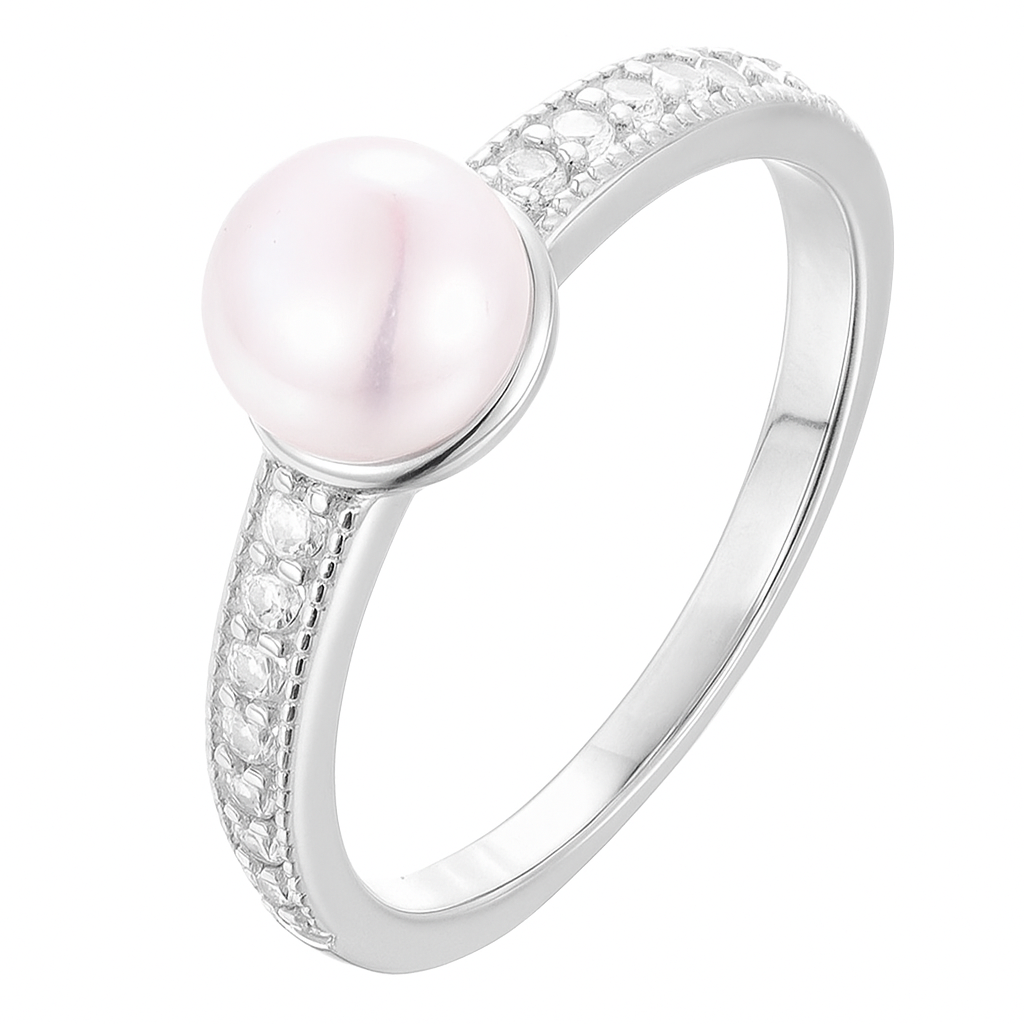 • A radiant pearl set in warm gold, complemented by a diamond-studded band that glows like sunlight over calm seas. The soft pink undertone of the pearl creates an aura of femininity and grace, perfect for those who shine effortlessly.