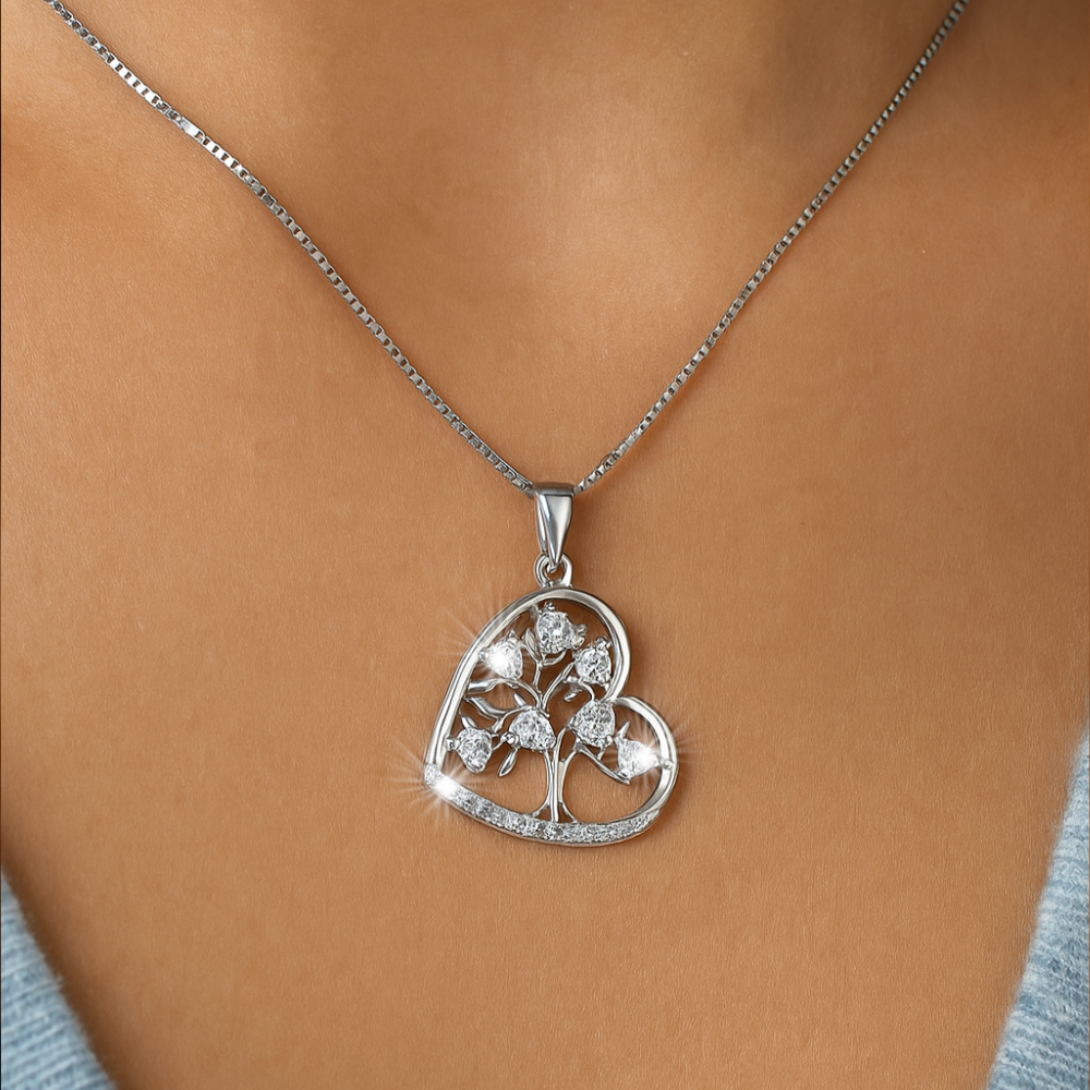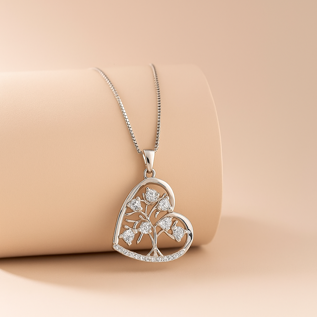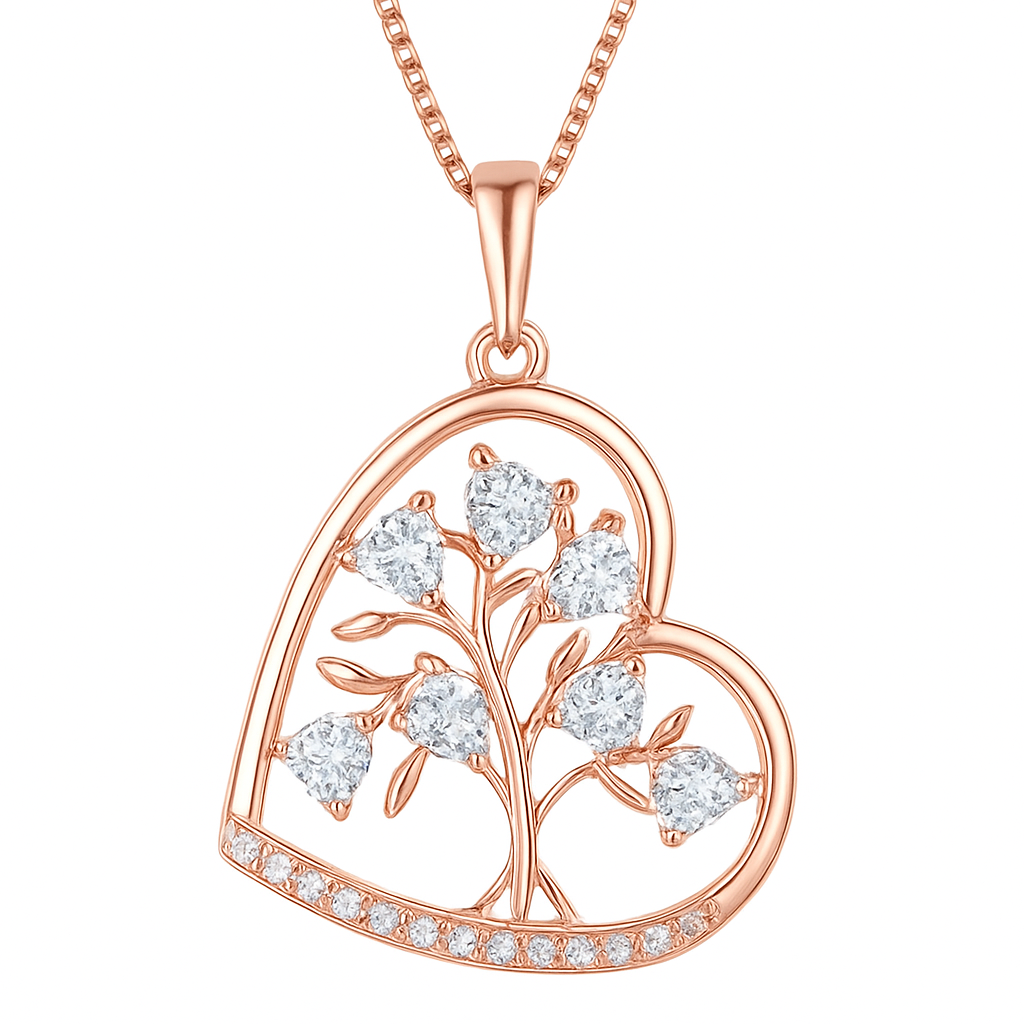 Within a golden heart, a diamond-studded tree flourishes — its branches celebrating resilience, roots, and enduring love. A poetic emblem of growth and connection, this pendant is crafted for those who treasure life’s bonds.