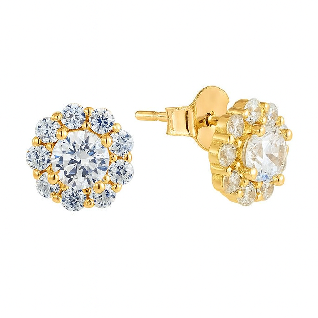 18k white, rose, or yellow gold with VS1 diamonds This earring captures the delicate beauty of a flower in full bloom. The pair feature a luminous central diamond surrounded by a halo of petals, each set with brilliant VS1 diamonds that glisten like morning dew. Worn together with the pendant and ring, they radiate harmony and elegance, offering the perfect expression of femininity and grace.