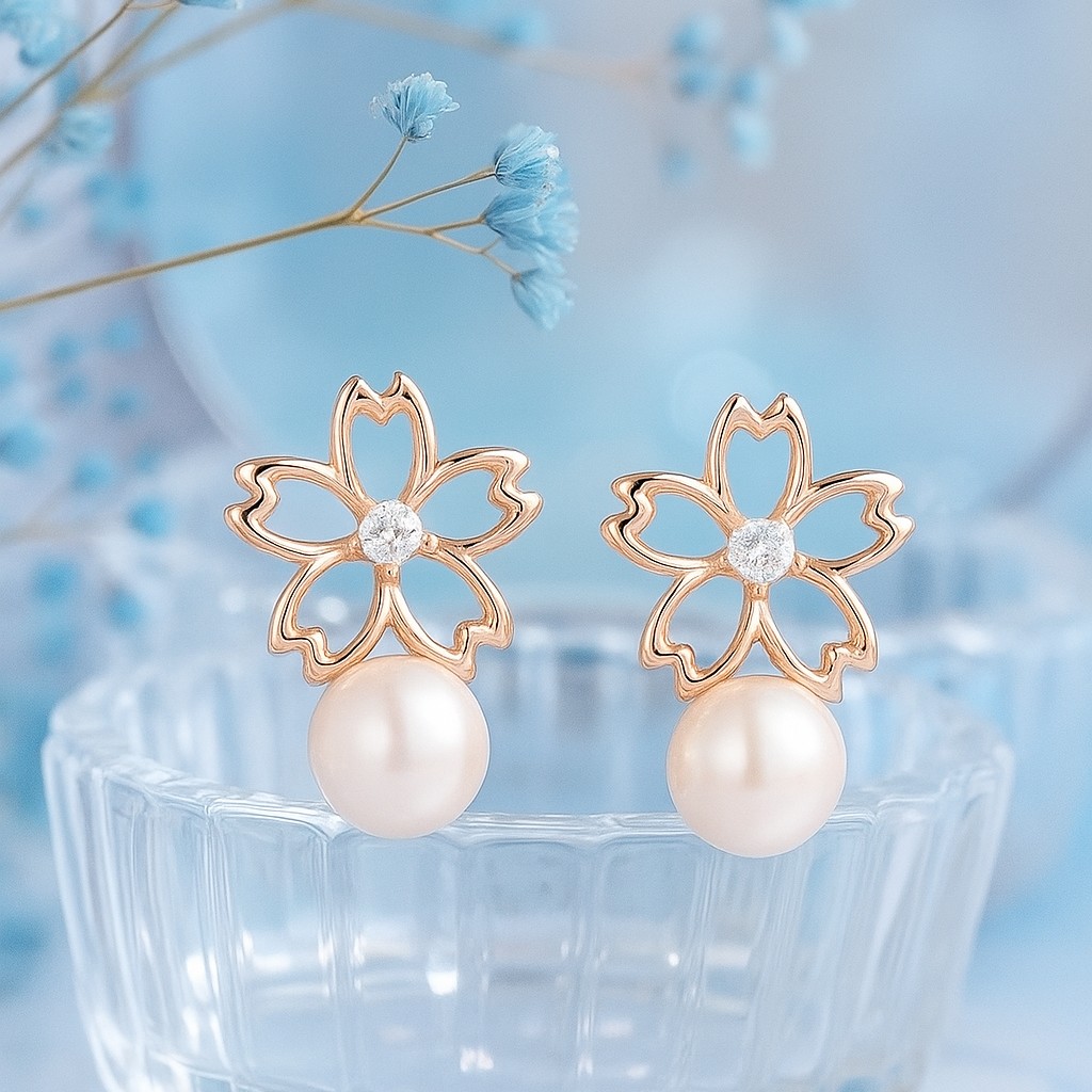 Size & Product Weight:Sakura Blossom & Pearl Diamond Stud Earrings (2.80gr)