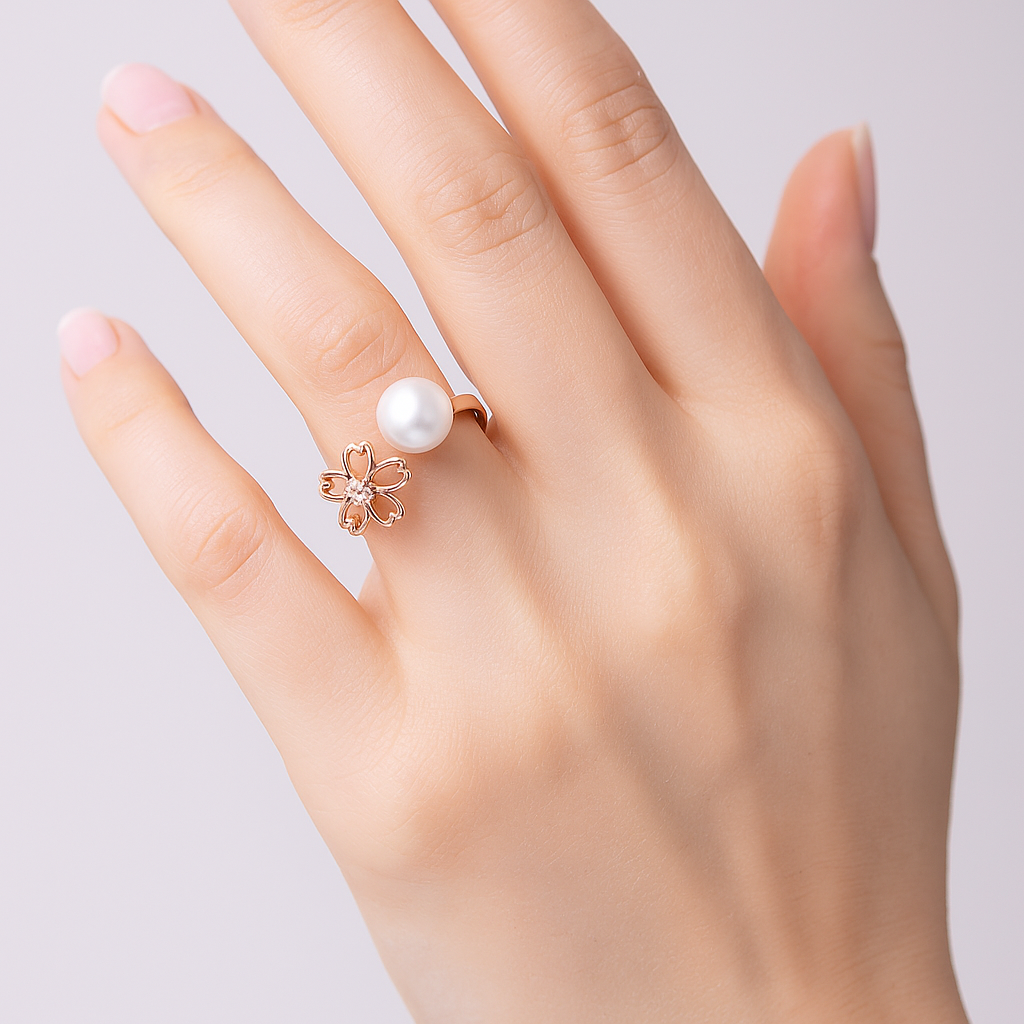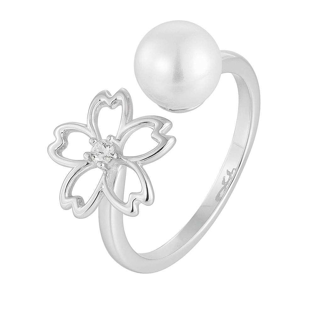 Sakura Blossom & Pearl Open Ring