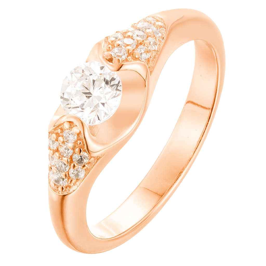 A brilliant diamond rest in harmony, framed by pavé shoulders that flow like waves of light. The sleek, high-polish band keeps the silhouette clean and timeless, drawing every glance to the stone’s fire. Elegant, effortless, and made for forever—this is the classic promise ring, perfected.