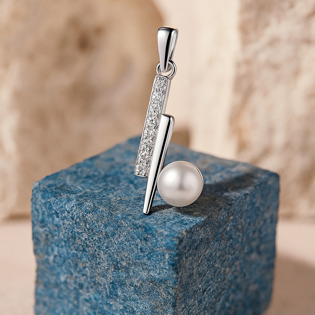 • The Equinox Pendant is a striking symbol of harmony, where the luminous pearl rests against sleek, geometric lines of polished gold. Accented with a vertical cascade of VS1 diamonds, it captures the meeting point of day and night—classic beauty framed by modern refinement. Available in white, rose, or yellow gold, this piece transforms simplicity into sophistication, perfect for both everyday elegance and evening allure.