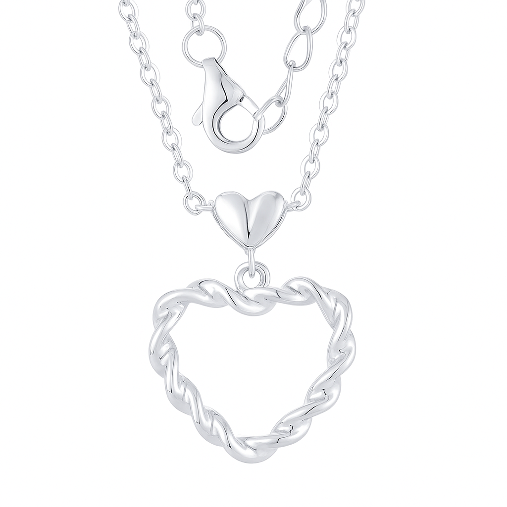 This pendant reimagines the eternal heart through a graceful twisted silhouette, where fluid curves intertwine to symbolize strength in unity and elegance in love. Suspended from a delicate gold chain, the open heart shimmers with sculptural brilliance, embodying purity and timeless devotion. Designed for the woman who celebrates love not only as an emotion, but as an enduring bond, this piece radiates modern minimalism with deep romantic meaning.         “Hearts of Eternity”