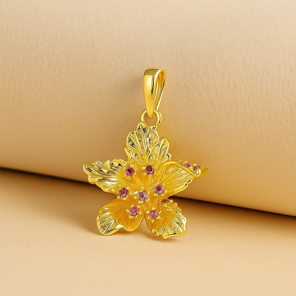 Yellow Gold Orchid Pendant with Pink Sapphires
